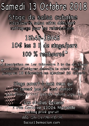 Intitulé :  stage salsa découverte (10€ les 3 h) 13004